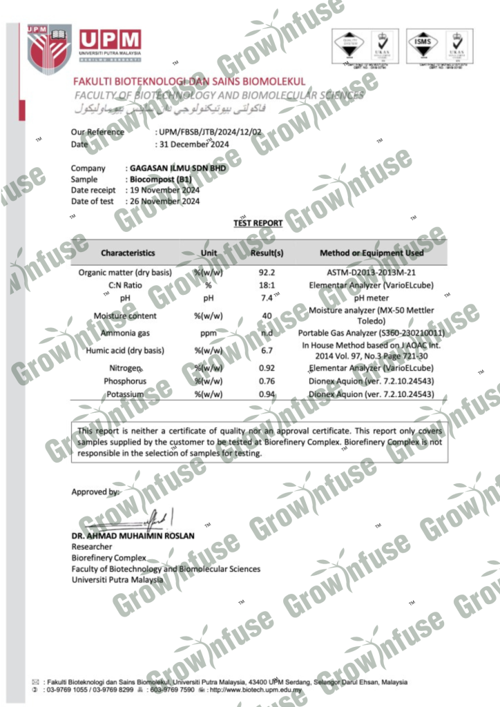 Growinfuse Biocompost B1 – Lab Test